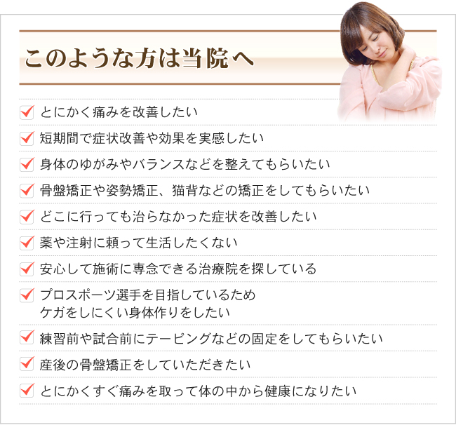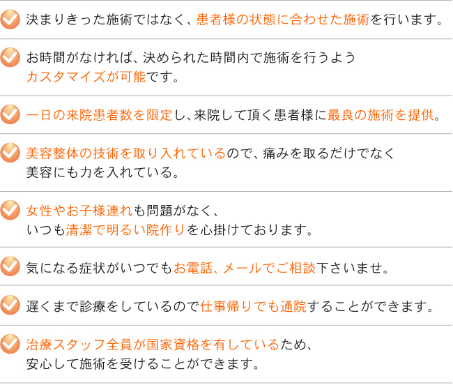 表面を楽にする慰安ではなく、より深層の骨格にまでアプローチして、患者様のスタイルまで意識して施術を行います。